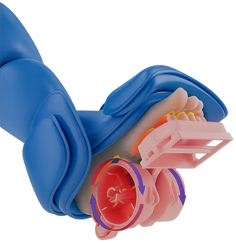 Üç bölmeli ayak masaj sistemi, ön ayak, ayak tabanı ve topuk bölgesini ayrı ayrı hedefleyerek tam kapsamlı bir rahatlama sunar. Döner tekerlekler ve derin yoğurma hareketleri sayesinde gün boyu yorulan ayaklarınızdaki baskıyı hafifletir, dolaşımı destekler.